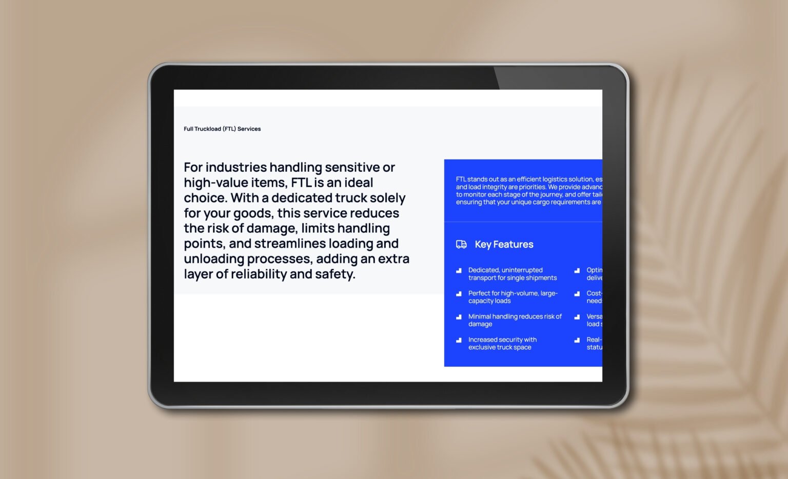 Effectively communicating a wide range of logistics solutions, from Full Truckload to dedicated fleet services, while maintaining clarity and conciseness.